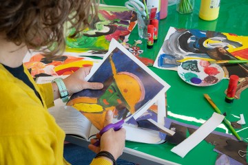 Bei einem Kreativworkshop in den Studios werden die Kinder und Jugendlichen selbst kreativ und setzen die in der Ausstellung gewonnenen Eindrücke anschließend mit unterschiedlichen Techniken und Materialien um.