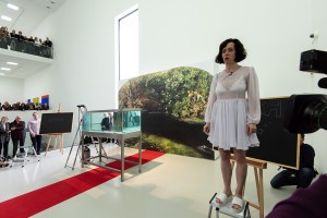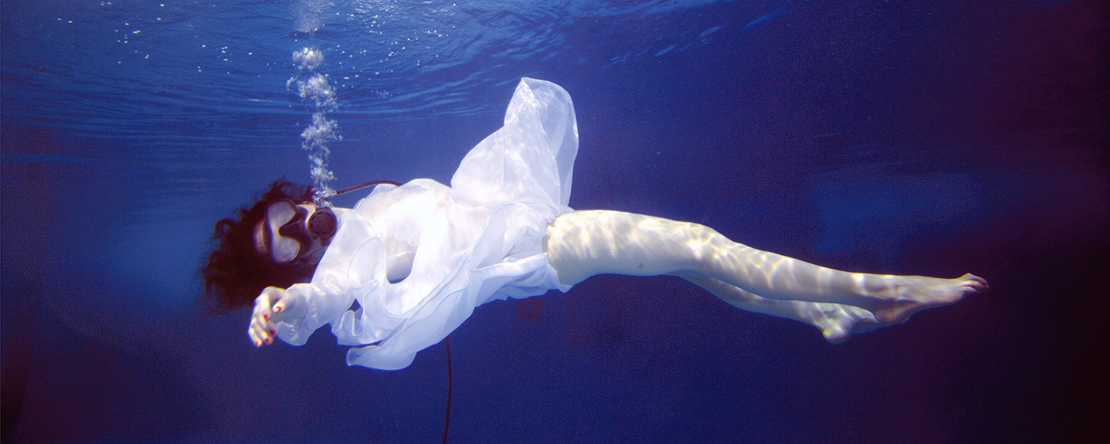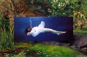 OPHELIA is an interdisciplinary performance presented as a live action as well as a subsequent video installation. It reflects the human-made destruction of nature, creating thereby references to art, literature and science. Submerged in a saltwater solution, with a breathing mask and wearing “Ophelia’s” dress, the artist Nadja Verena Marcin will try to quote Daniil Kharms’s text “The Werld” about human perception.