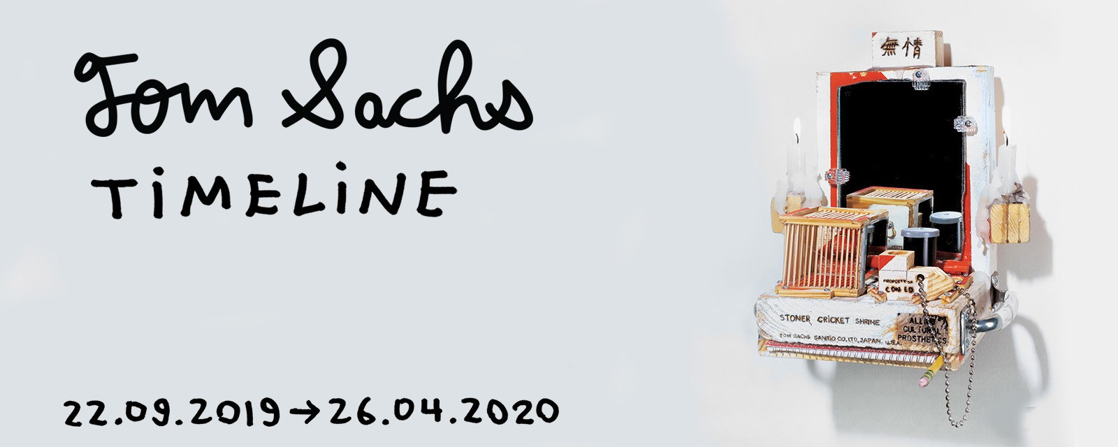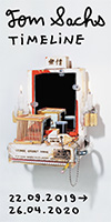 In the more than four-meter-long wall work Timeline, which gives the show its name, the artist traces his life’s path. Not only does the timeline include depictions of his own works and biographical events as well as documentary photographs from politics and world events, but also album covers and book titles. All these elements and influences are the basis from which Tom Sachs builds his alternative worlds. With inventiveness and irony, the artist critically questions the value of products and the meaning of existing rituals and ways of life.