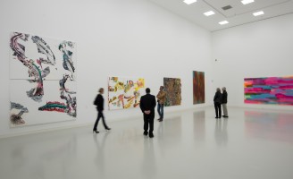 These are works of the 1980s to the 2000s by Pia Fries (b. 1955), Bernard Frize (b. 1954), Katharina Grosse (b. 1961), and Toon Verhoef (b. 1946). The artists are all exponents of non-representational painting, but exhibit very different artistic approaches. Thus Katharina Grosse’s transparent painting offers a counterpoint to the impasto and almost physical paint applications of Pia Fries. Toon Verhoef, in contrast, is an artist who knows how to stage in painting the great distinctive form. In addition, Bernard Frize is open for artistic experiments, always providing an insight into the genesis of the work.