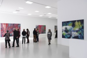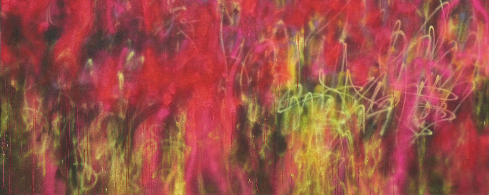 Haunsperg creates colourful, dynamic and mostly large-format paintings using a variety of techniques and materials. For this process, she attaches great importance to the use of high-quality paints, which she mixes according to traditional recipes. With full use of her physical strength, Haunsperg applies the paint with the brush, pen, spraygun or by pouring it onto the canvas. In the interaction of careful planning and a love for experimentation, numerous layers of superimposed fields, webs of colour and energetic colour explosions arise. These cast a spell over the viewer, captivating the beholder through the exciting relationship between image surface and image depth – all the while leaving room for diverse associations.